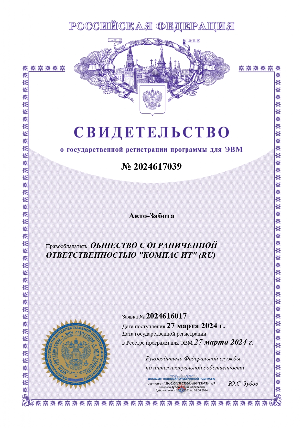 Программное обеспечение зарегистрировано в реестре Минцифры